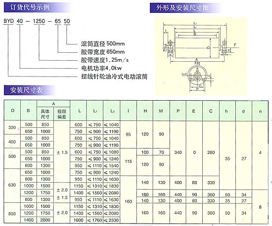 3、BYD型油冷式電動滾筒選用于工作環(huán)境溫度一1 5℃~+40。c,海拔不超過1 DOO米。